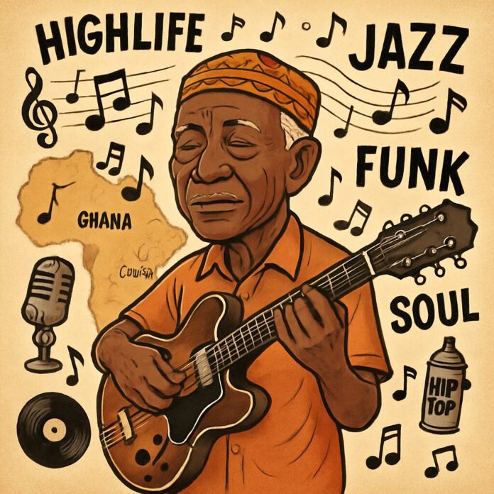 Born Deroy Taylor in Cape Coast in 1936, Taylor began his musical journey in the 1950s, performing with seminal bands such as the Stargazers and the Broadway Dance Band. His innovative guitar style and intricate arrangements quickly established him as a key architect of the highlife genre, which dominated Ghana’s soundscape during that era. Over six decades, he skillfully blended Ghanaian rhythms with jazz, funk, soul, and early Afrobeat, creating a unique sonic palette that resonated across Africa.