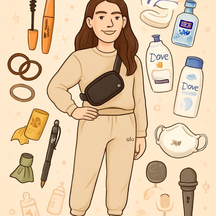 Beyond athleisure, Kelce’s go-everywhere bag features the Lululemon Everywhere Belt Bag, which she praises for its versatility and style-matching ability. Her beauty routine includes Covergirl Lash Blast Volume Mascara, which she doubles up on to avoid running out, and the Dae Cactus Fruit 3-in-1 Styling Cream, a product she also uses on her daughters’ hair. As a self-proclaimed germaphobe, she keeps 3M Aura masks and Purell hand sanitizer handy, along with unexpected items like Earth Rated dog poop bags for containing messy situations with her children.