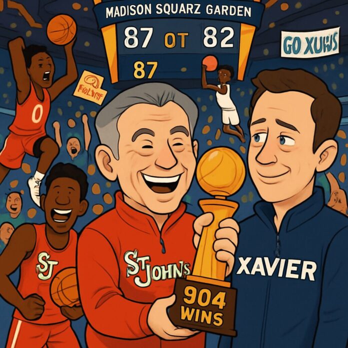 Rick Pitino, the Hall of Fame coach of St. John’s University, achieved his 904th career win, moving into third place on the Division I all-time victories list, by defeating Xavier 87-82 in overtime on Monday night. The milestone was particularly poignant as it came against his son, Richard Pitino, who coaches the Musketeers, adding a family dimension to the achievement.