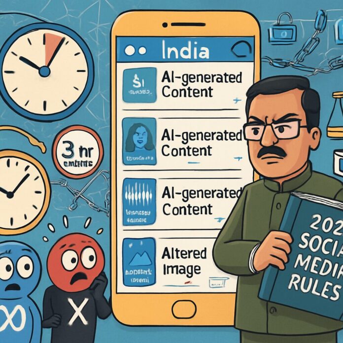 India has introduced stringent new social media regulations requiring platforms to label AI-generated content and comply with takedown requests within three hours, sparking widespread debate over digital governance and free speech.