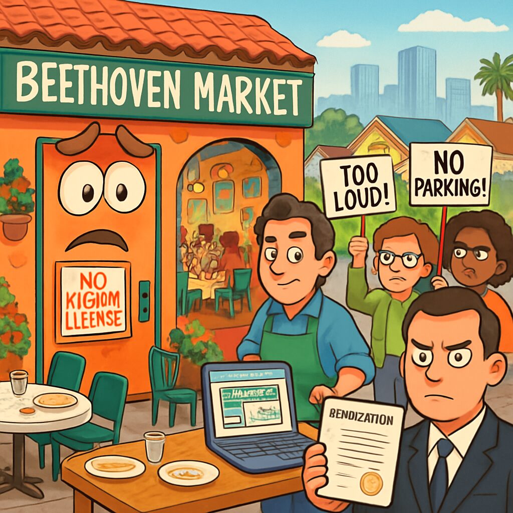 Beethoven Market opened its doors in March 2025, transforming a former grocery store into a bustling dining spot celebrated for its California-Italian cuisine and vibrant atmosphere. Owned by Jeremy Adler, a partner from Santa Monica’s Cobi’s, the restaurant rapidly gained popularity, drawing crowds that often overflowed into the residential streets. However, this success soon sparked friction with neighbors, who began filing complaints with the City of Los Angeles as early as April 2025, citing issues such as excessive noise, congested parking, and violations related to outdoor dining and alcohol service.